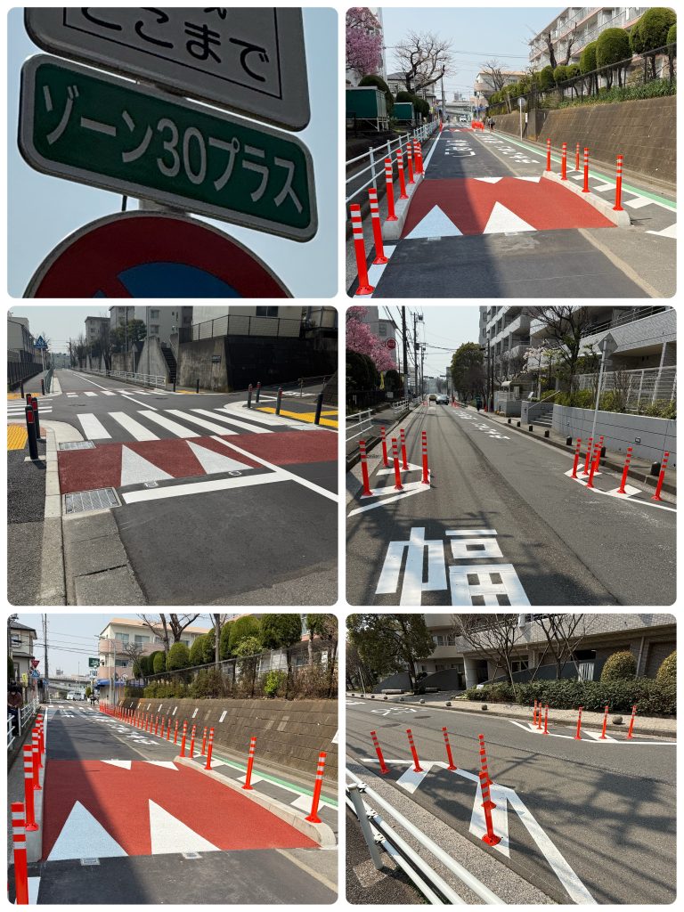 ゾーン30プラスとは、生活道路における人優先の安全・安心な通行空間の整備の更なる推進を図るため、 最高速度30km/hの区域規制 「ゾーン30」とハンプやスムーズ横断歩道といった「物理的デバイス」との適切な組合せにより交通安全の向上を図ろうとする区域で、今回周辺自治会や学校とも協議の上、狭さくやハンプ等が設置されました。