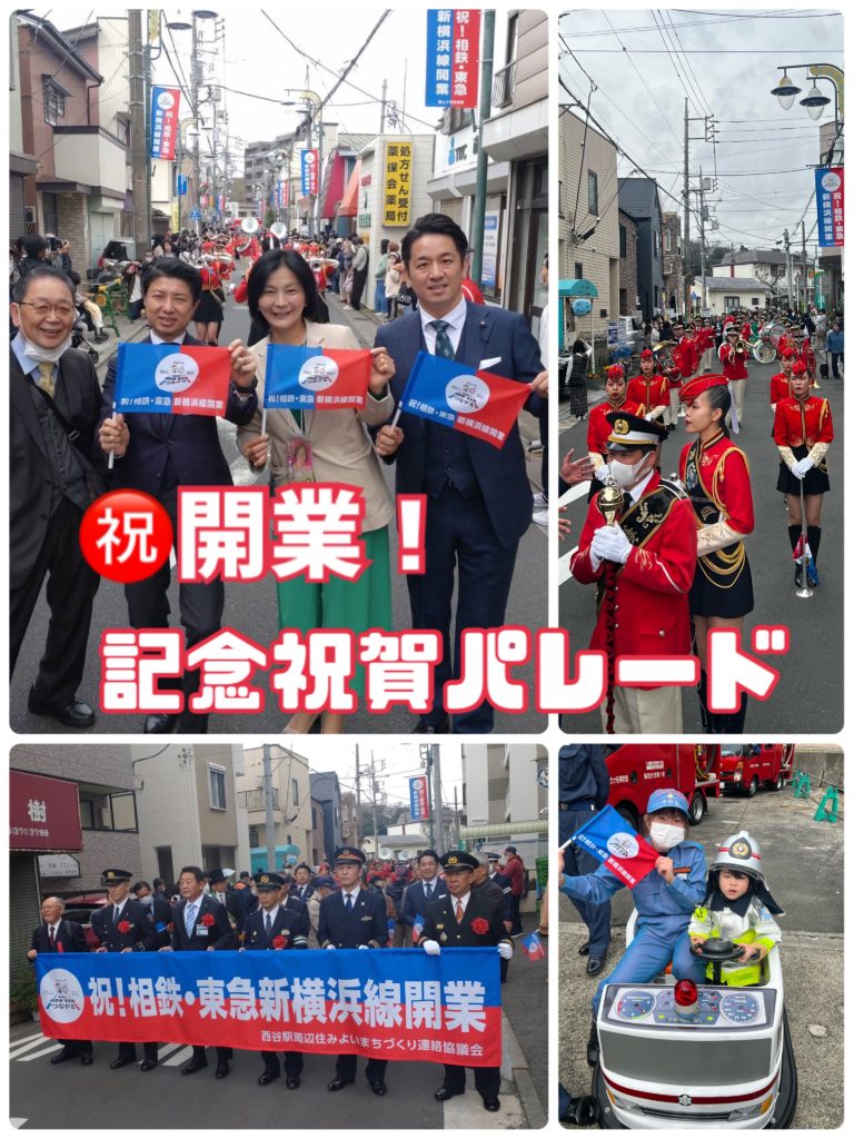 21日にはこの度の開業を祝う「記念祝賀パレード」が西谷商店街で開催され、横浜市消防音楽隊や西谷中学校の吹奏楽部の皆さんが花を添えていただきました。