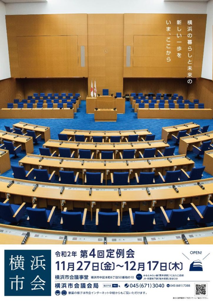 本定例会では、横浜市職員に対する期末手当及び勤勉手当に関する条例の一部改正および新型コロナウイルス感染症に伴うくらし・経済対策として約31憶円の補正予算が審議されます。