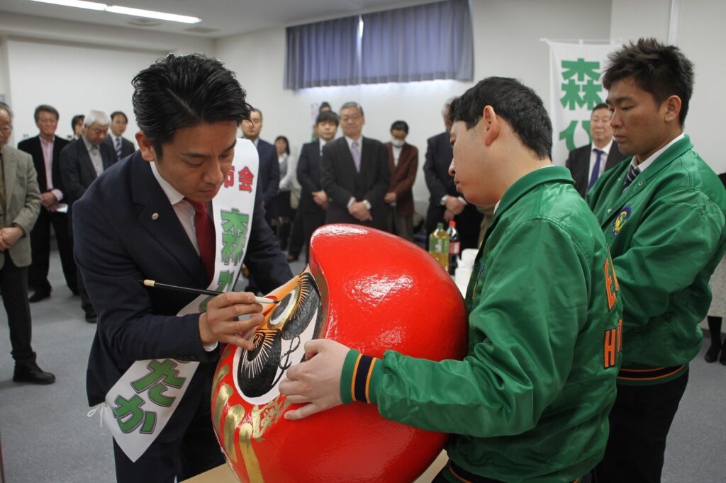 本選挙戦を見守っていただく達磨もしっかりと開眼。4/7投開票日には勝利のV字を刻めるよう残された期間全力で取り組んでまいります!