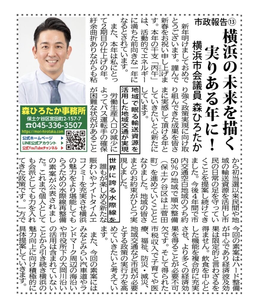 これまで地道に取り組んできた政策や公約を一つでも多く実現させ市民・区民の皆さまに実感していただける一年にしてまいりたいと思います。