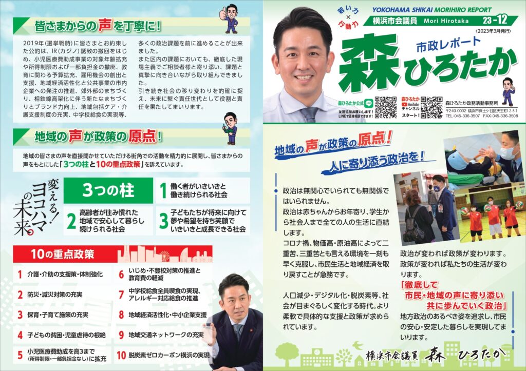 「森ひろたか 市政レポート23-12」を発行いたしました!