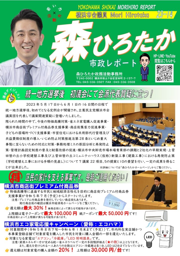 「森ひろたか 市政レポート23-14」を発行いたしました!