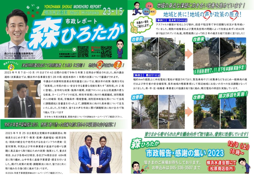 「森ひろたか 市政レポート23-15」を発行いたしました!
