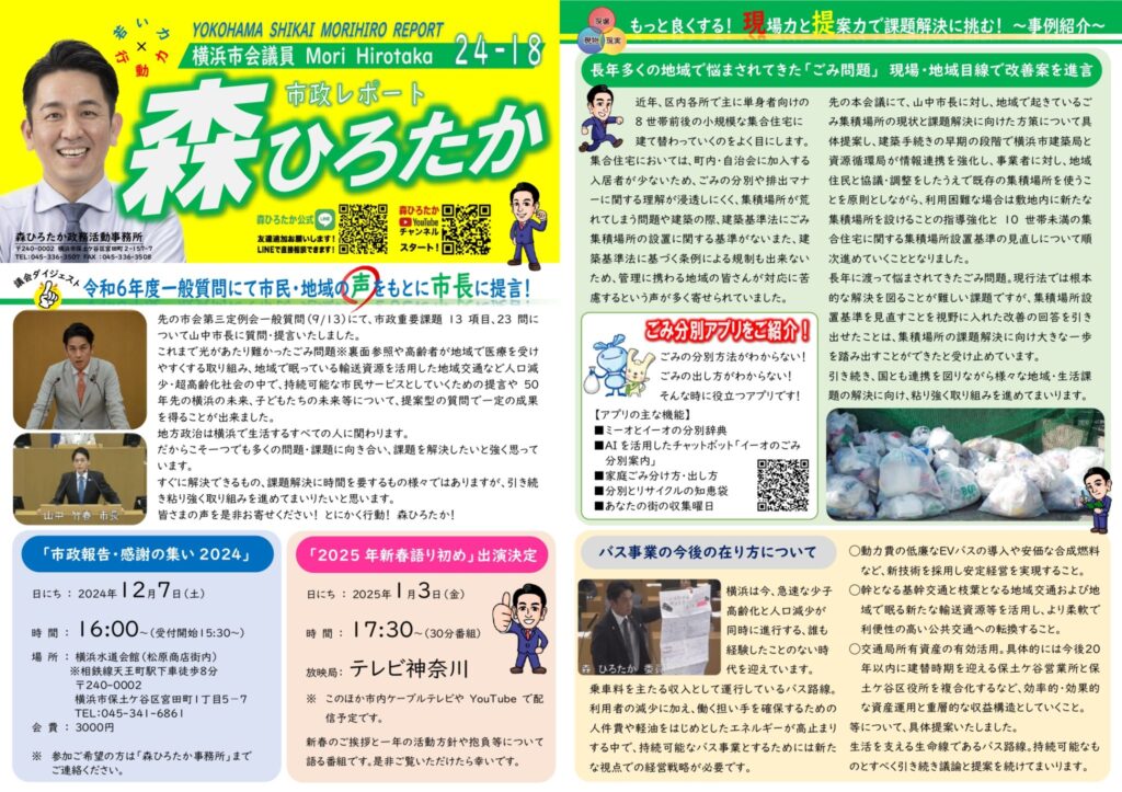 「森ひろたか 市政レポート24−18」を発行いたしました!